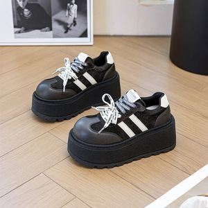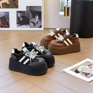 头层牛皮松糕厚底复古鞋女2025新款轻底百搭增高小个子休闲潮板鞋