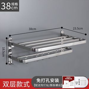 不锈钢304浴巾收纳置物架毛巾架免打孔浴室卫生间厕所壁挂置物新