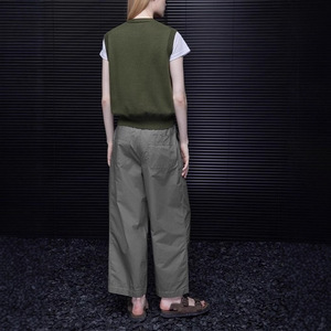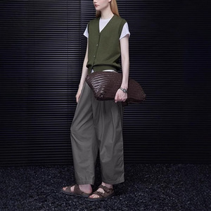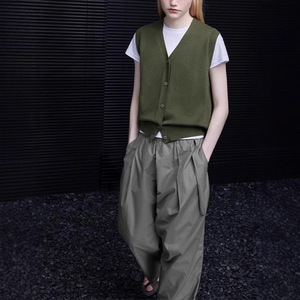 momemt军绿色针织v领马甲开衫女2025春秋季新款时髦洋气慵懒风