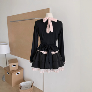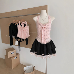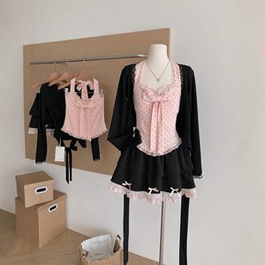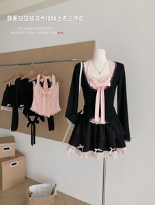 韩系蝴蝶结纯欲秋季纯欲甜辣风挂脖吊带开衫半裙三件套2025新款
