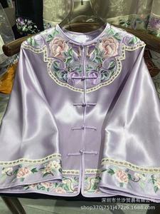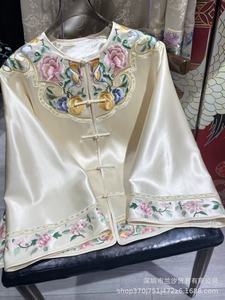 9547新中式新款国色牡丹复古重工刺绣醋酸缎面宽松外套女盘扣