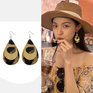 皮革水滴形吊坠耳环民族风小众百搭耳钩个性气质时尚百搭耳饰批发