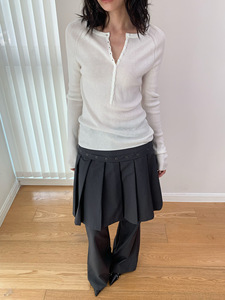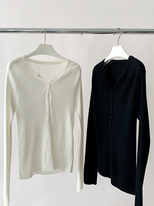 桃乐丝 高品质“老钱内搭”细腻感薄款绵羊毛多扣坑条长袖针织衫