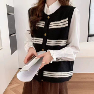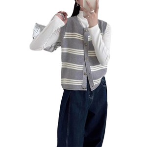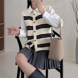 条纹针织开衫马甲女2025早秋季宽松外穿叠穿衬衫坎肩毛衣背心上衣
