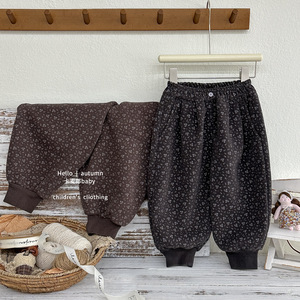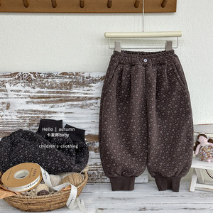 儿童保暖裤2025年秋冬季时髦加绒棉裤休闲宽松碎花长裤中小童裤子