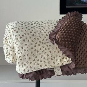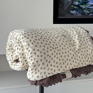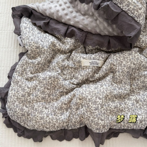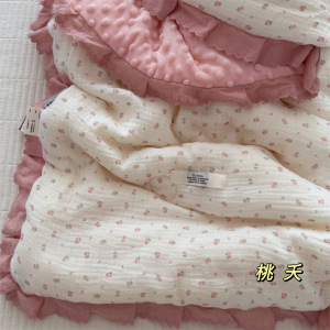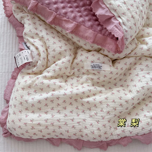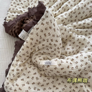 韩系田园风纯棉双层皱皱纱春秋被小清新碎花全棉保暖双人被可机洗