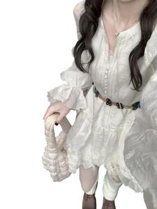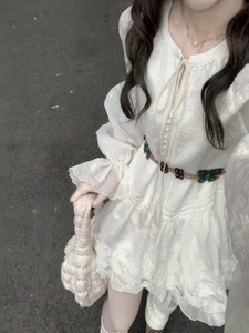 早秋超仙蛋糕连衣裙女绝美小裙子甜美法式长袖收腰蓬蓬短裙子