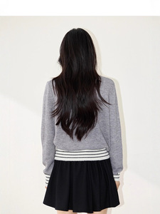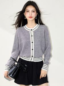 哥家商场同款女装2025秋季条纹毛衣修身圆领毛针织开衫外套上衣