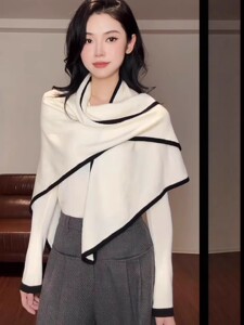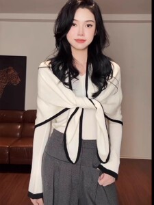 2025早秋巨好看的韩系穿搭设计感三角披肩+领打底针织衫两件套女
