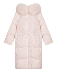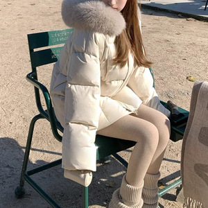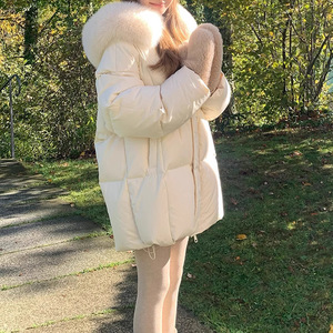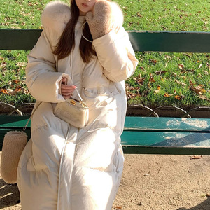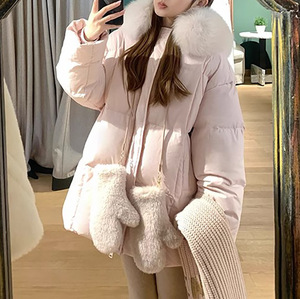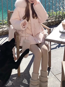 莫斯科的冬三星90白鸭绒狐狸毛领中长款保暖粉色羽绒服外套女