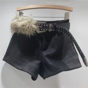 鹿皮绒配腰带短裤女新款复古气质百搭休闲阔腿显瘦修身外穿靴裤