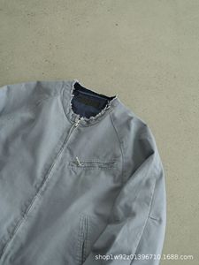 秋季新款水洗无领夹克男女同款时尚潮流宽松休闲外套简约百搭上衣
