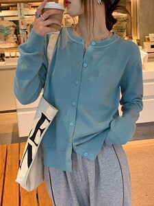 现货长袖针织衫外套女新款韩版洋气宽松显瘦外搭毛衣开衫上衣