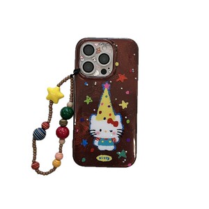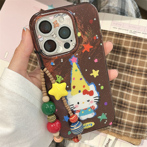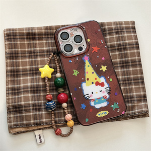 锡纸纹棕底彩色星星生日帽KT 壳+链条