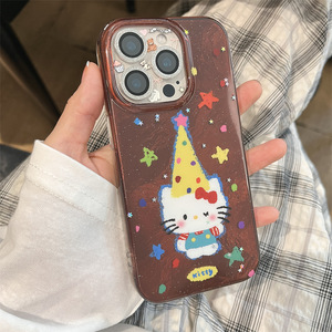 涂鸦彩色星星生日帽KT适用iPhone17苹果16ProMax/15/14手机壳新款