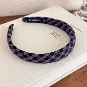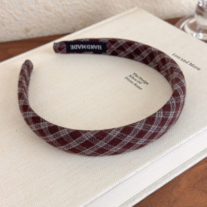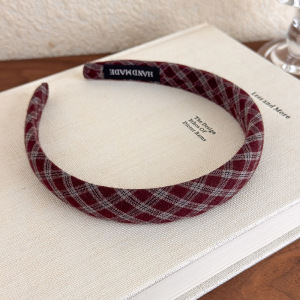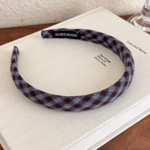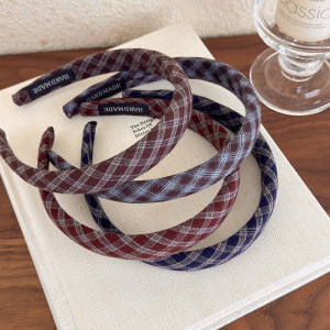美式复古学院风磨毛格纹发箍百搭气质压发卡高颅顶洗脸细头箍发饰