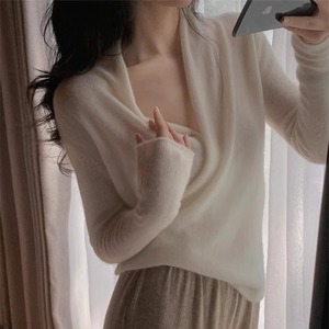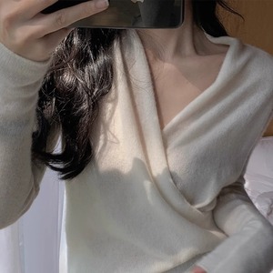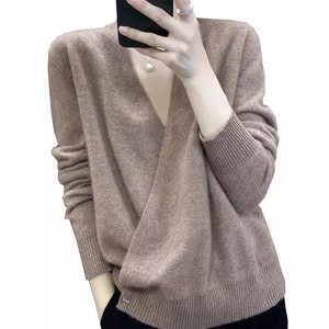 2025秋冬软糯!山羊绒衫女交叉V领时尚休闲高端纯色针织打底毛衣