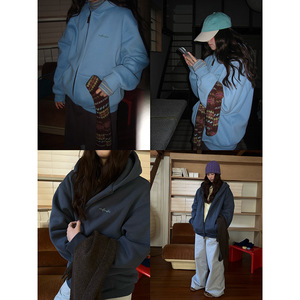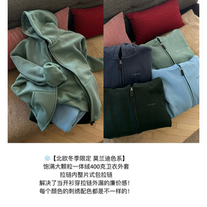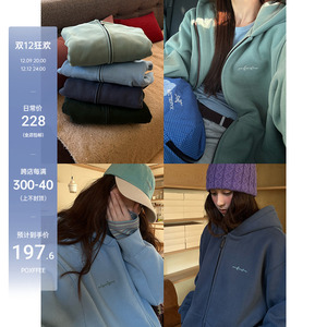 POXFFEE/毛绒一体400克大卫衣女秋冬加绒加厚韩系慵懒风连帽外套