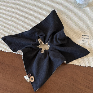 高质感绒布AB面方巾发圈纽扣百搭秋冬发饰头绳新款纯色高级感发绳