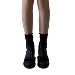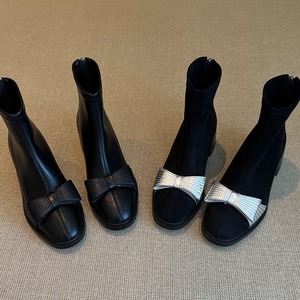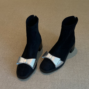 羊皮版~轻奢女鞋水晶蝶2025冬季圆头中跟真皮鞋高跟短筒气质短靴