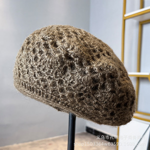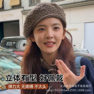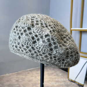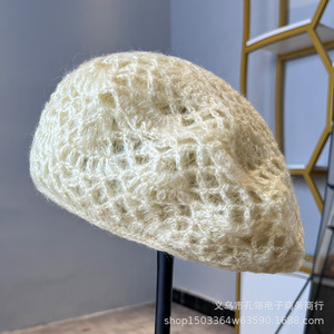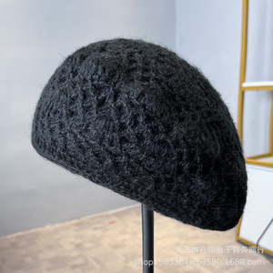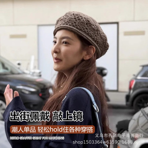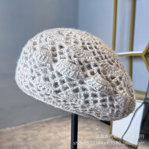 明星同款手工钩花贝雷帽子女秋冬保暖显脸小画家帽百搭气质针织帽