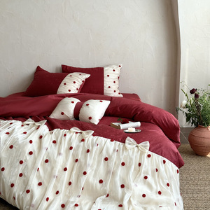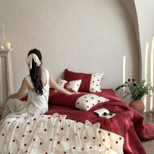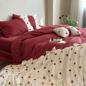 Lolita风法式浪漫纯棉四件套被套床单轻奢全棉长绒棉蝴蝶结少女心