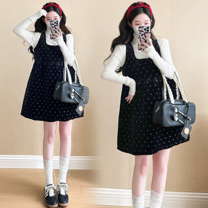 孕妇秋季新款小香风宽松时尚丝绒背心裙针织打底衫甜美显瘦两件套