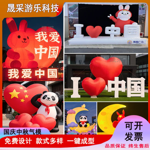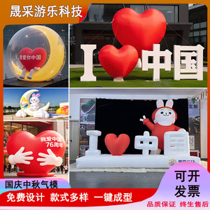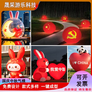 国庆中秋气模装饰国庆充气爱心爱国熊充气月兔球美陈气氛布置厂家