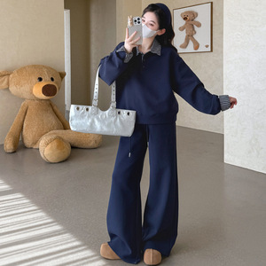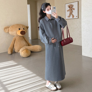 2025秋冬新品孕妇大码休闲衬衣拼接卫衣阔腿裤半裙套装