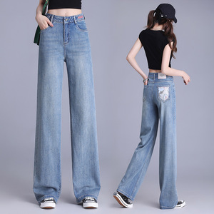 品牌高端垂感百搭牛仔裤窄版阔腿直筒裤2025秋冬新品休闲裤女长裤
