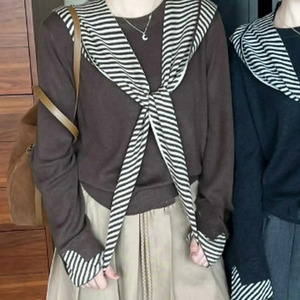 韩系学院风条纹披肩长袖针织衫女早秋季穿搭宽松显瘦时尚休闲上衣