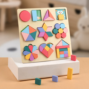 蒙氏早教益智儿童木制拼图拼版几何形状认知配对宝宝木制益智玩具
