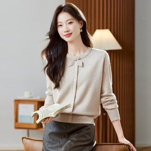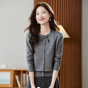 春秋2025新款慵懒风毛衣内搭高级感针织衫法式蝴蝶结长袖打底衫女