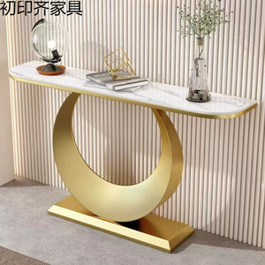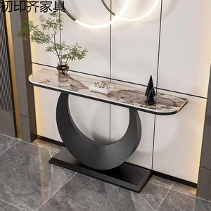 意式玄关桌端景台岩板入户桌子简约现代轻奢客厅靠墙半圆供桌走廊