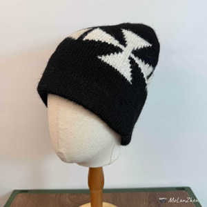 韩国十字提花羊毛混纺针织帽男女街头百搭毛线帽大头围显脸小冷帽