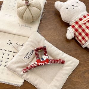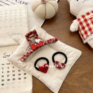 复古红色格纹蝴蝶结头饰高级感学院风发夹少女发圈抓夹BB夹头饰