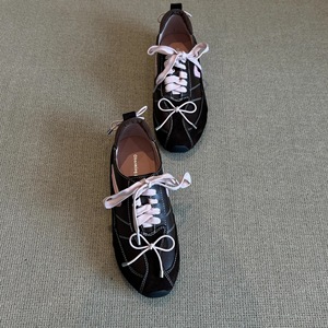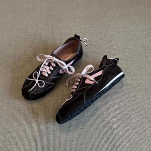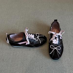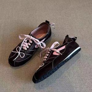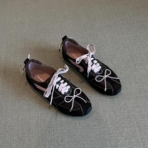 现货复古圆头休闲百搭运动系带蝴蝶结德训鞋新款百搭平底单鞋女