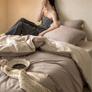 流苏磨毛全棉四件套色织高级感大提花纯棉加厚被套保暖秋冬季床品