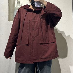 冬季新款文艺复古保暖纯色拼接口袋连帽加绒外套