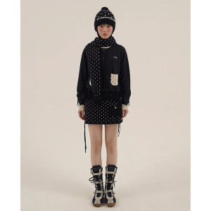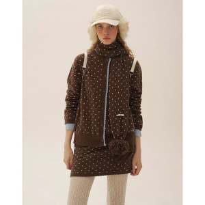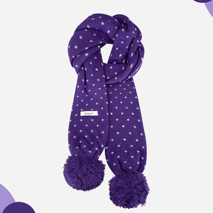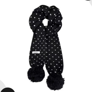 复古波点围巾时尚百搭护颈围脖秋冬新款韩版蓬松大毛球装饰丝巾女
