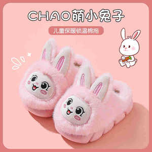 儿童棉拖鞋女童冬季可爱保暖加绒兔子毛毛居家男童防滑宝宝棉拖鞋