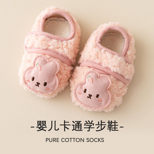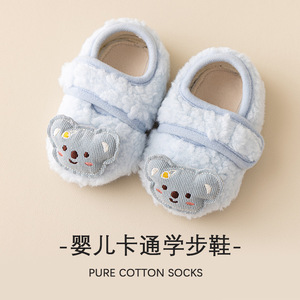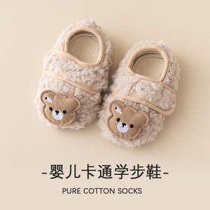 秋冬婴儿地板鞋加绒保暖卡通公仔宝宝学步鞋袜防滑袜套不掉跟软底