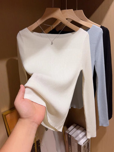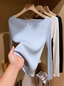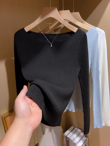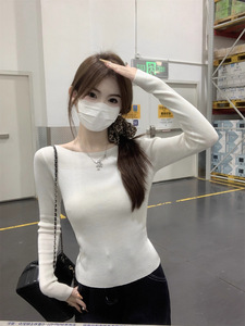 2025年秋季一字露肩打底长袖针织衫女高级感修身薄款内搭毛衣上衣