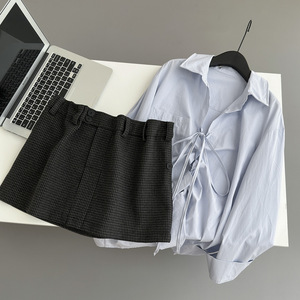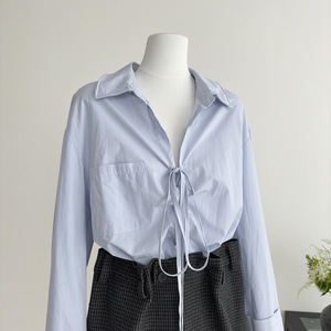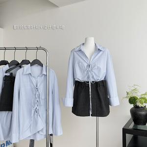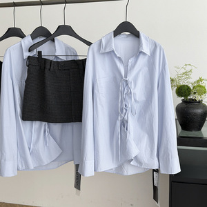 实拍区区欧阳翻领系带衬衫女秋季新款设计感小众复古宽松长袖上衣