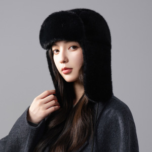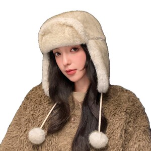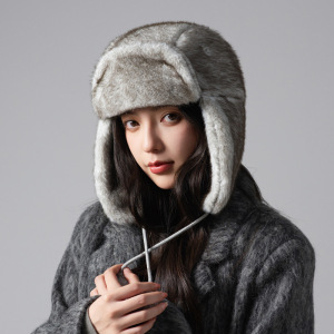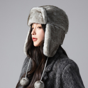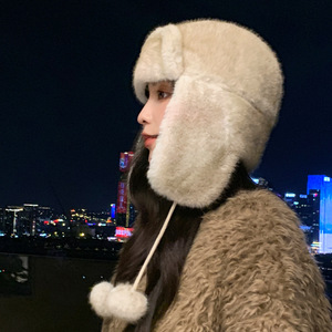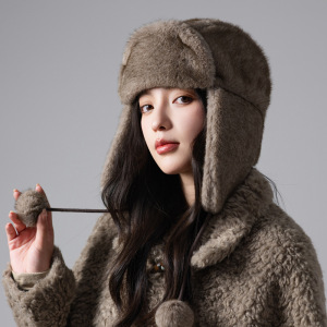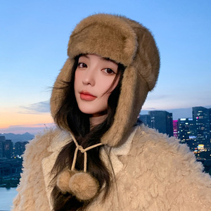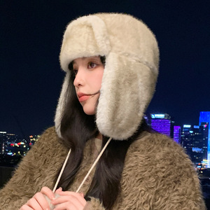 冬天帽子女款加厚保暖雷锋帽户外骑行防风绳护耳毛绒帽纯色显脸小