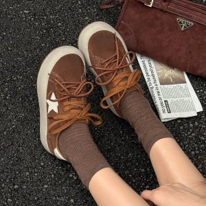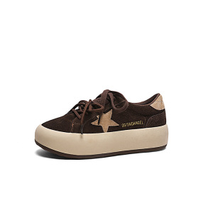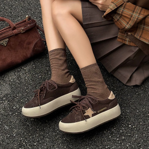 复古做旧星星小脏鞋厚底休闲轻便不累脚运动板鞋真皮拼色德训鞋女