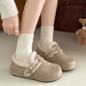 女王范加绒加厚保暖平底棉鞋女2025新款冬季复古一脚蹬勃肯鞋子
