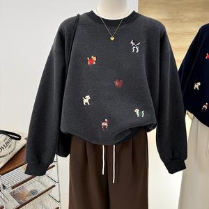 卡通刺绣小狗秋冬新款保暖韩系设计感时尚长袖套头卫衣女圆领