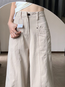 杏色工装牛仔裤女秋季慵懒松弛感高腰直筒显瘦弯刀镰刀阔腿裤子
