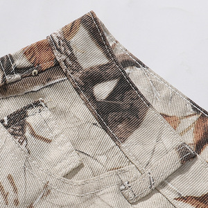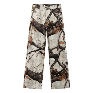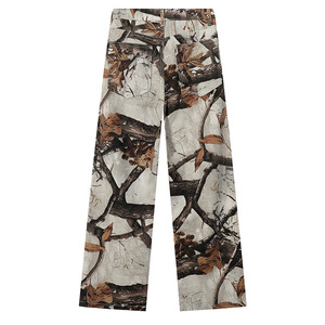 欧美潮牌高街明星同款树枝满印迷彩牛仔裤男女街头风阔腿工装长裤